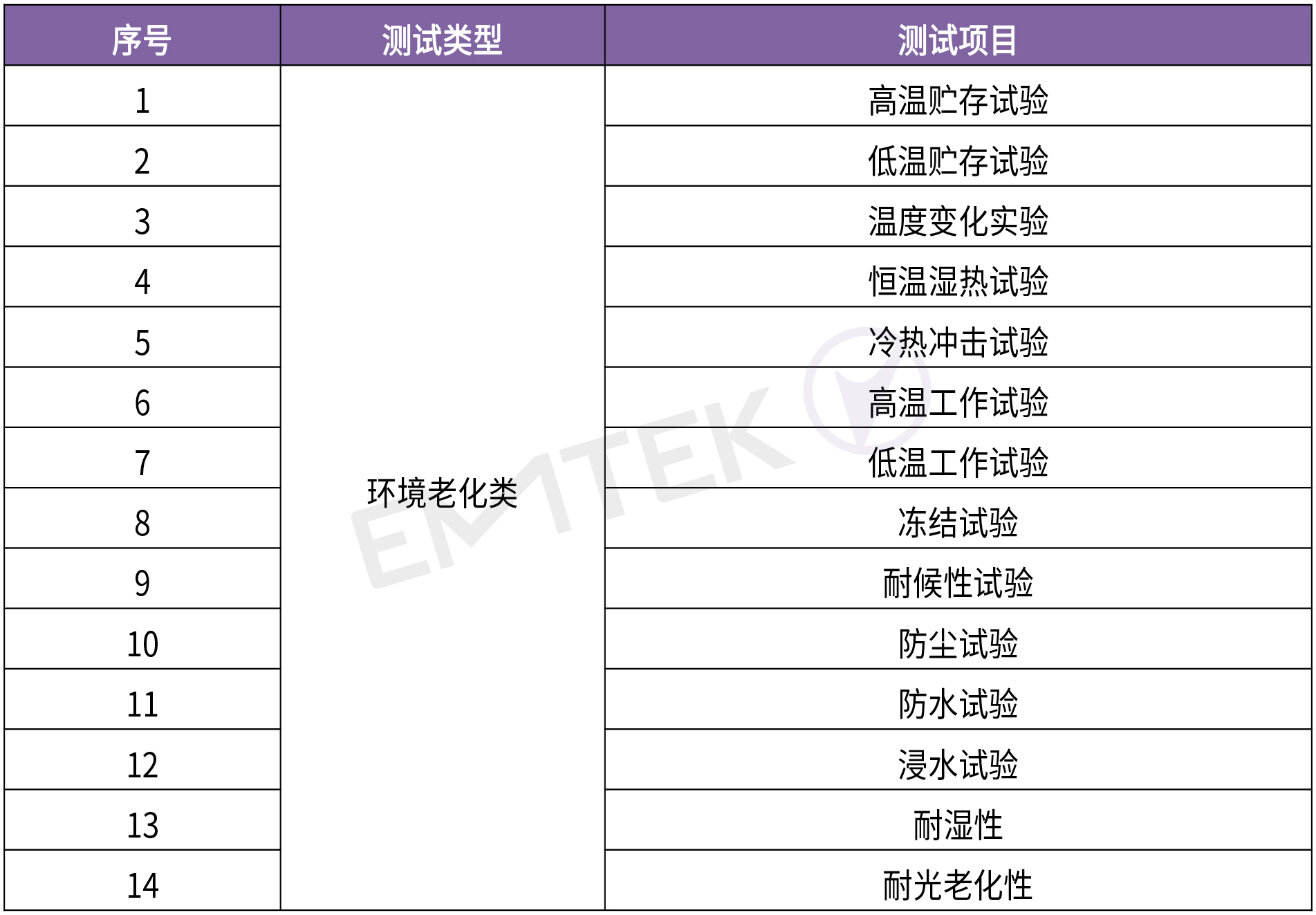 1. 環(huán)境可靠性試驗(yàn):是將產(chǎn)品暴露在自然的或人工的環(huán)境條件下經(jīng)受其作用,以評(píng)價(jià)產(chǎn)品在實(shí)際使用、運(yùn)輸和貯存的環(huán)境條件下的性能,并分析研究環(huán)境因素的影響程度,包含的環(huán)境試驗(yàn)如耐熱性、耐濕性、冷熱交變、防塵性、淋雨試驗(yàn)等;