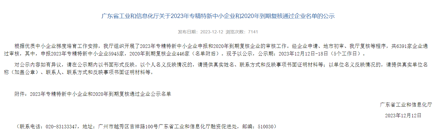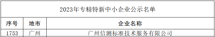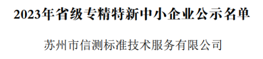 近日,廣東省工業和信息化廳和蘇州市工業和信息化局分別發布《廣東省工業和信息化廳關于2023年專精特新中小企業和2020年到期復核通過企業名單的公示》和《關于江蘇省2023年專精特新中小企業和2020年度專精特新企業復核通過企業名單的公示》,經過相關審核,憑借在檢測領域持續創新和優質技術水平等優異表現,信測標準廣州公司、蘇州公司成功入選,被授予“廣東省2023年專精特新中小企業”和“江蘇省2023年專精特新中小企業”稱號。