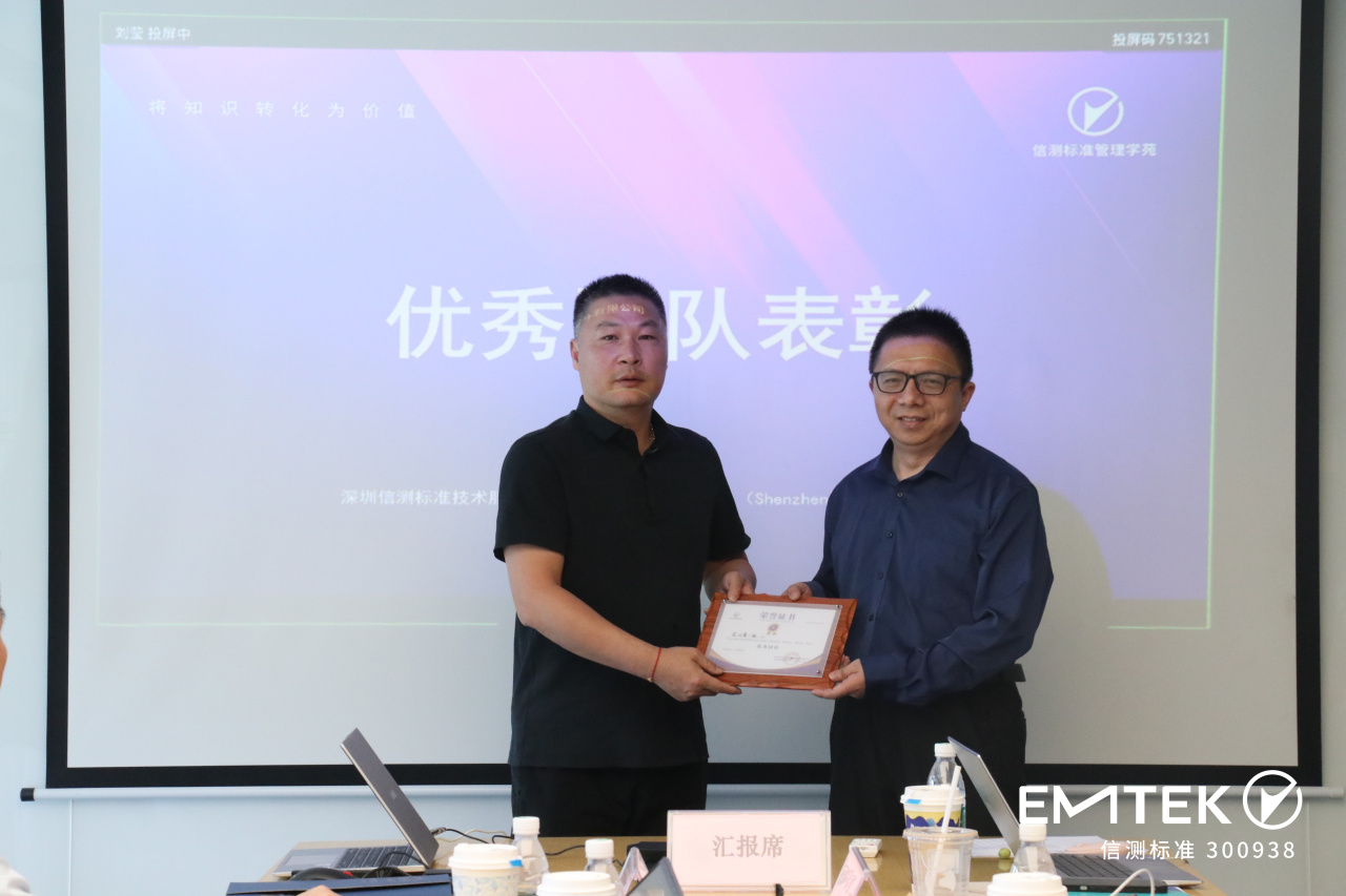 結(jié)業(yè)儀式當(dāng)天,項(xiàng)目迎來(lái)了高潮——小組匯報(bào)。各小組通過(guò)連線(xiàn)匯報(bào)的方式展示了他們?cè)谂嘤?xùn)期間的學(xué)習(xí)成果和實(shí)踐經(jīng)驗(yàn),經(jīng)過(guò)激烈的角逐,評(píng)選出了優(yōu)秀團(tuán)隊(duì)和優(yōu)秀學(xué)員。這些榮譽(yù)不僅是對(duì)他們個(gè)人和團(tuán)隊(duì)努力的認(rèn)可,也是對(duì)他們項(xiàng)目管理能力提升的肯定。信測(cè)標(biāo)準(zhǔn)董事長(zhǎng)呂杰中先生為優(yōu)秀代表頒發(fā)了榮譽(yù)證書(shū)。