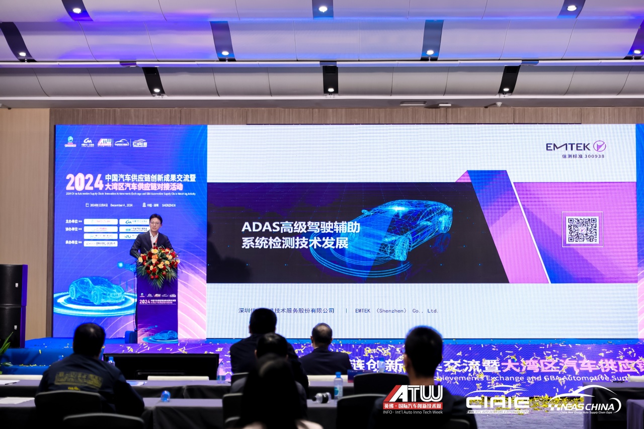 2024年12月4日,由中國汽車工業(yè)協(xié)會、廣東省汽車行業(yè)協(xié)會主辦,廣汽零部件有限公司、廣東省汽車工程學會、廣州汽車工業(yè)行業(yè)協(xié)會、廣州市智能網聯與新能源汽車產業(yè)人才聯合會等單位協(xié)辦,英佛會議展覽(上海)有限公司承辦的“2024中國汽車供應鏈創(chuàng)新成果交流暨大灣區(qū)汽車供應鏈對接活動”在深圳國際會展中心舉辦。信測標準總經理袁奇先生出席活動并分享了主題為《ADAS高級駕駛輔助系統(tǒng)檢測技術發(fā)展》的演講。