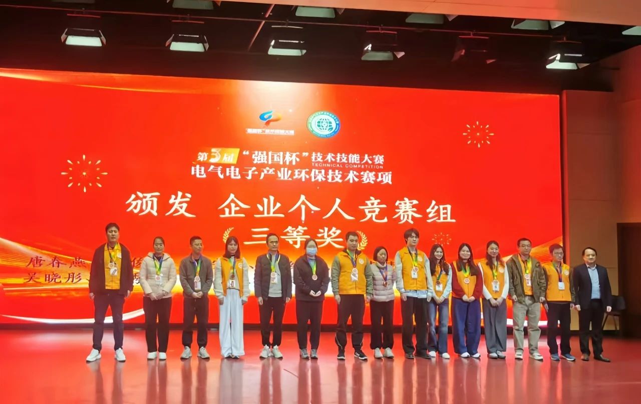 2025年1月11日,備受矚目的第三屆“強國杯”技術技能大賽電氣電子產業環保技術賽項總決賽圓滿落幕。廣州信測標準技術服務有限公司參賽選手歷經激烈角逐、一路過關斬將,憑借扎實的專業知識、豐富的實踐經驗以及堅韌不拔的頑強毅力,最終榮獲三等獎的好成績,充分展現出專業技能,彰顯出拼搏奮進、勇于創新的競技精神。
