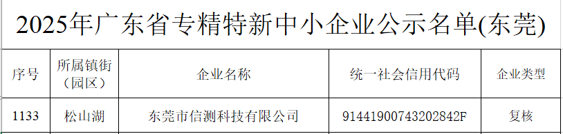 近日,廣東省工業(yè)和信息化廳及科學技術廳陸續(xù)公布了2025年認定名單,東莞市信測科技有限公司(以下簡稱:東莞信測)憑借在檢測領域卓越的技術創(chuàng)新能力、精細化的管理體系與突出的市場競爭力,成功喜獲兩項重磅認定: