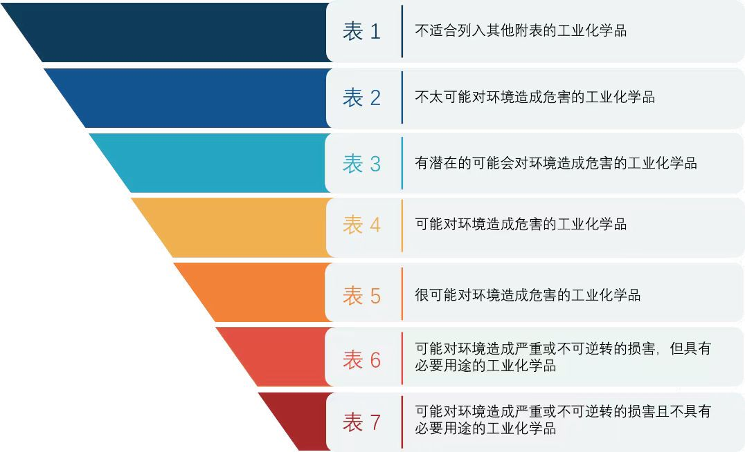 工業(yè)化學(xué)品環(huán)境管理標(biāo)準(zhǔn)(IChEMS)由澳大利亞政府制定,旨在高效地管理工業(yè)化學(xué)品對(duì)環(huán)境的風(fēng)險(xiǎn),同時(shí)為澳大利亞各地的企業(yè)提供一致的要求。IChEMS登記冊(cè)記錄了化學(xué)品的環(huán)境管理標(biāo)準(zhǔn),包括特定工業(yè)用途的風(fēng)險(xiǎn)管理措施。工業(yè)化學(xué)品根據(jù)風(fēng)險(xiǎn)大小被列入登記冊(cè)下述的7個(gè)附表中,其中附表6 和 7 包含的是對(duì)環(huán)境影響最大的工業(yè)化學(xué)品,IChEMS將致力于減少這些化學(xué)品的使用。