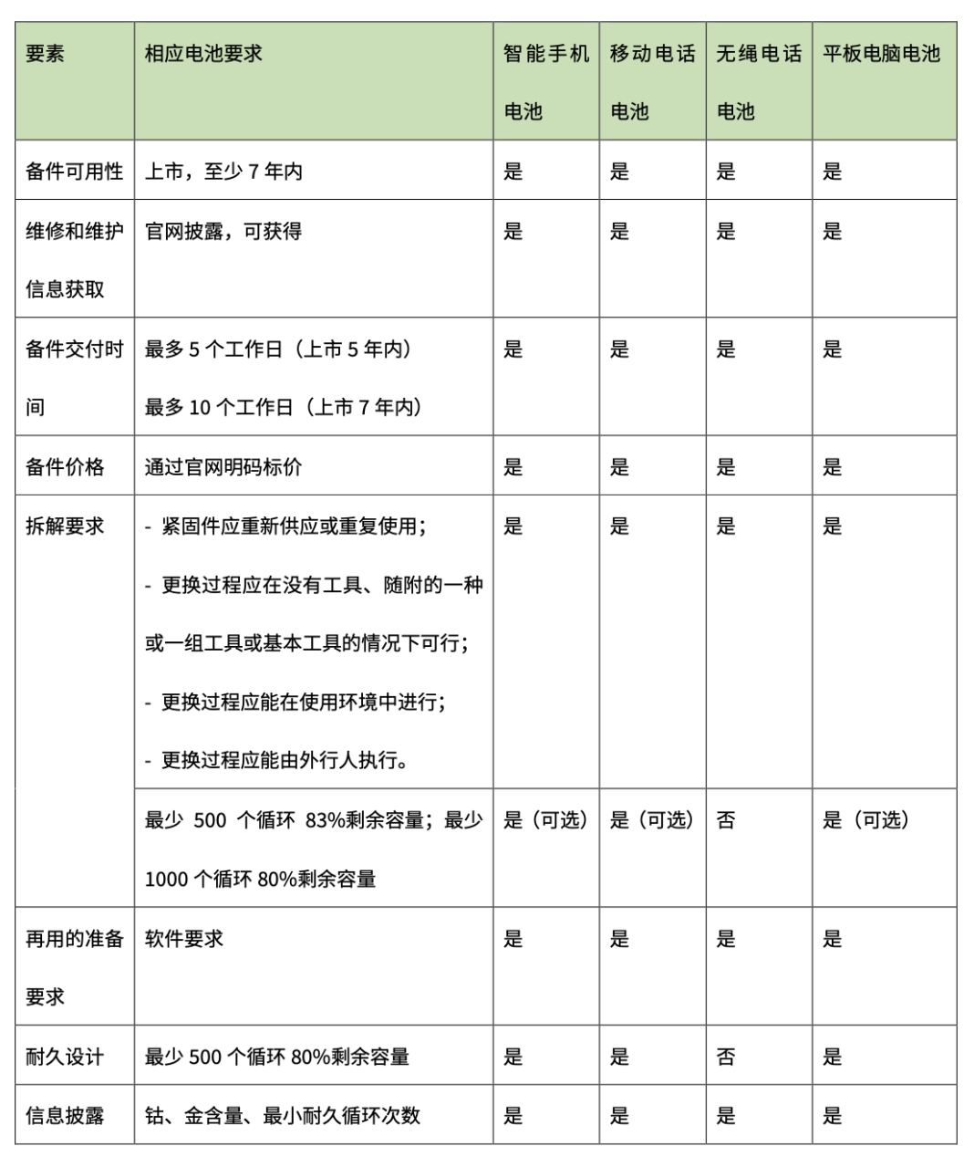 2. 法規(guī)針對的對象是智能手機等終端,是否可以同時考慮電池?